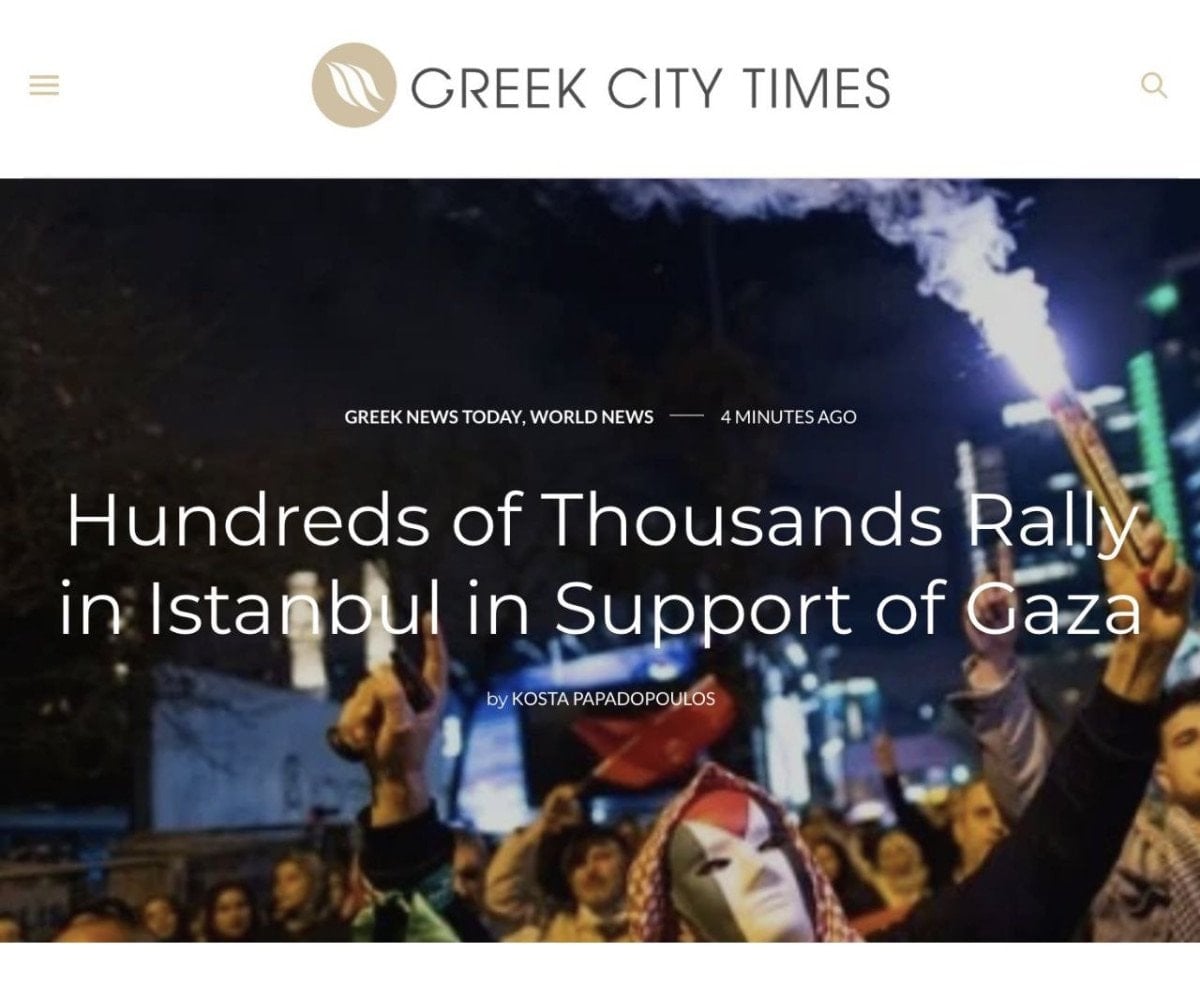 Greek City Times, İstanbul’da yüz binlerin, Filistinlilerin yanında yer alarak şiddeti sonlandırmak için bir araya geldiğini yazdı.