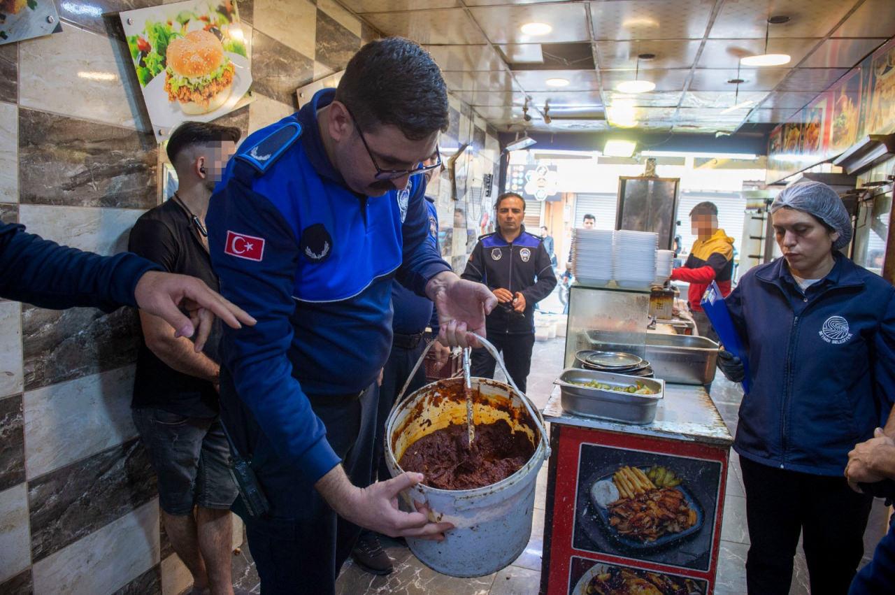 Adana’nın merkez Seyhan ilçesinde denetime çıkan zabıta ekipleri, bir tavuk dönercide yaptıkları incelemede salça ve turşuların kurtlandığını, tavukların hijyenik olmayan şartlarda saklandığını tespit etti. Bu görüntüler üzerine bazı ürünlere el konuldu.