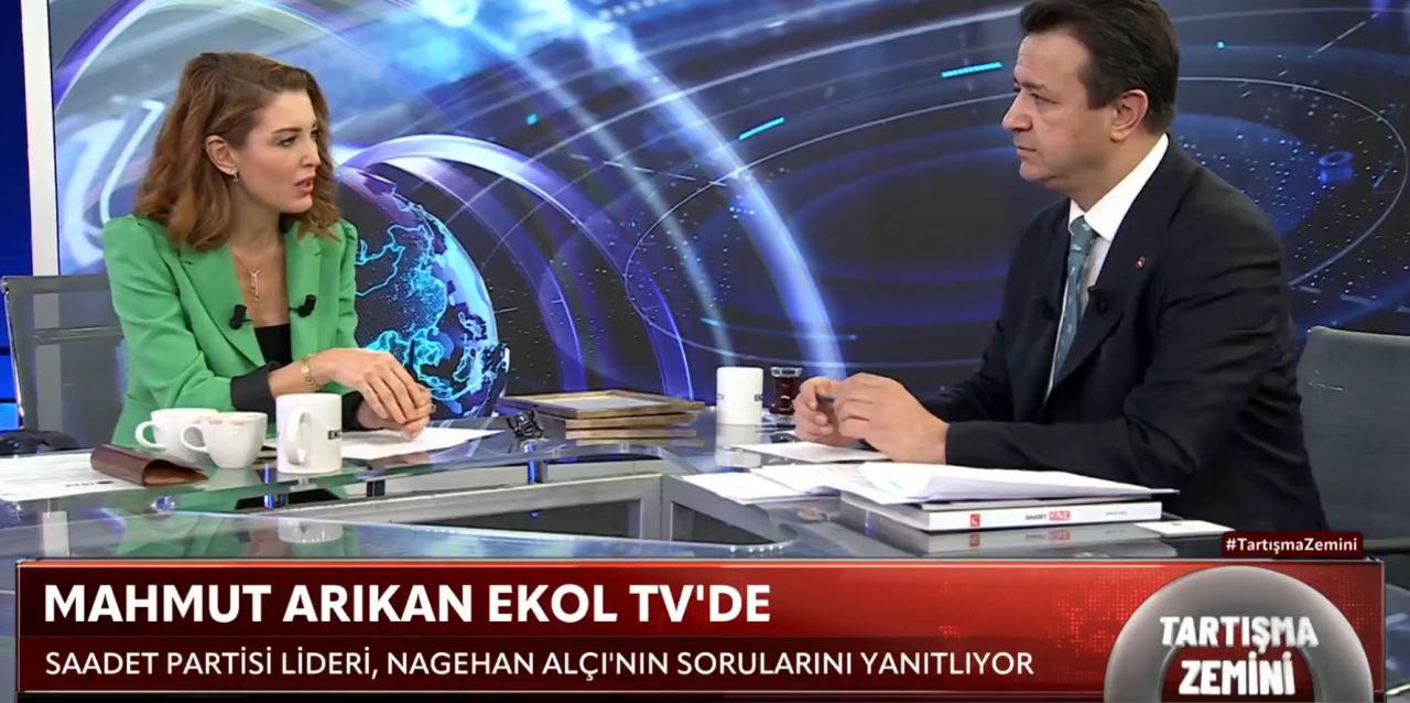 Saadet Partisi Genel Başkanı Mahmut Arıkan, Ekol TV ekranlarında yayınlanan ve Nagehan Alçı’nın sunduğu “Tartışma Zemini” programına konuk oldu. Arıkan, programda siyaset gündemine ilişkin önemli değerlendirmelerde ve dikkat çeken açıklamalarda bulundu.