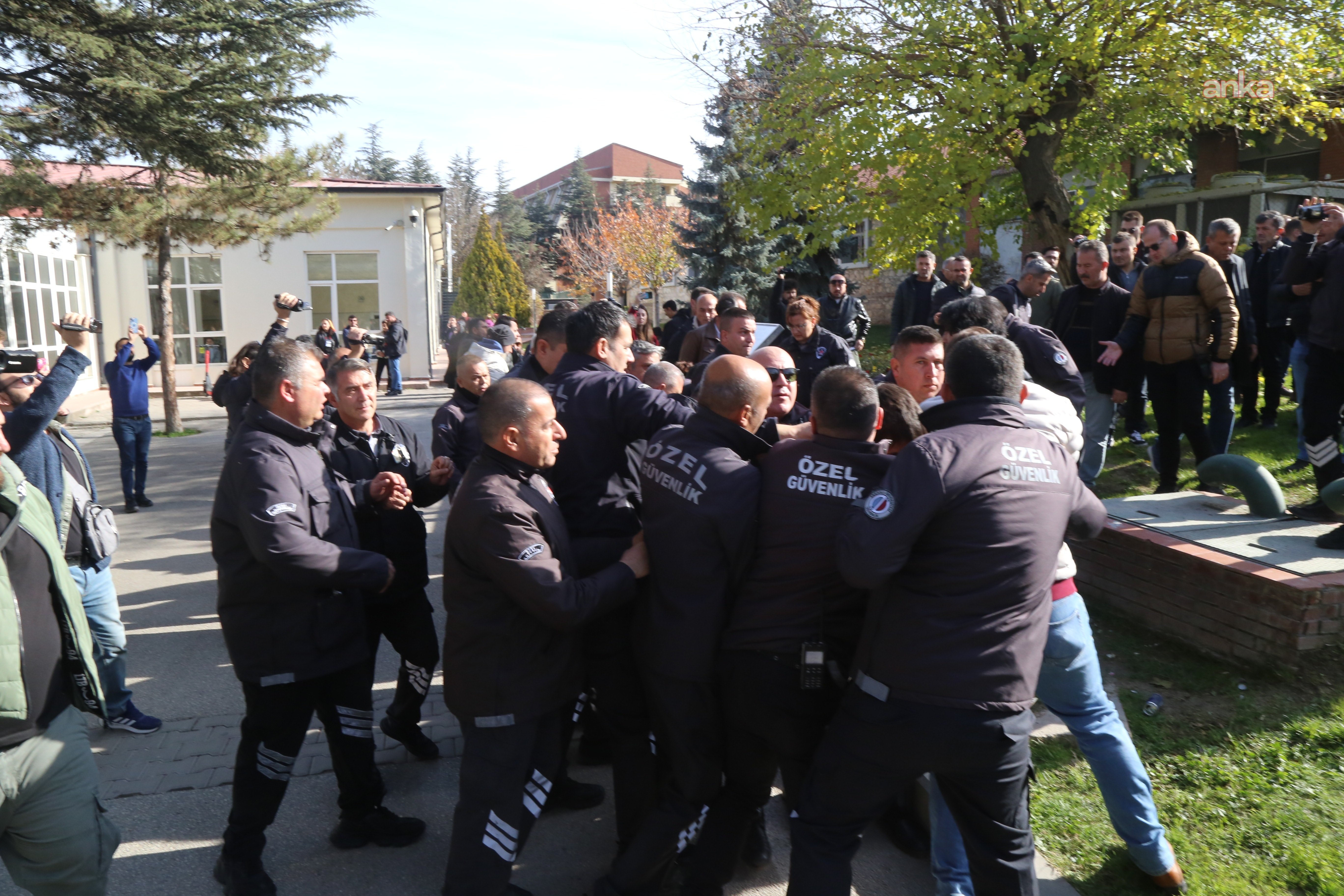 Özel güvenlik, öğrencilere yine müdahale etti. Özel güvenlik, öğrencileri yaka paça kampüs içinden dışarı çıkardı. Öğrencileri kollarından ve bacaklarından çekiştiren güvenlik görevlileri ile öğrenciler arasında arbede yaşandı.